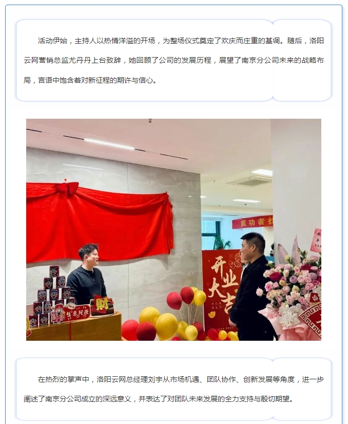 迎来了河南云网企业管理集团有限公司分公司南京云网广告有限公司的盛大开业。