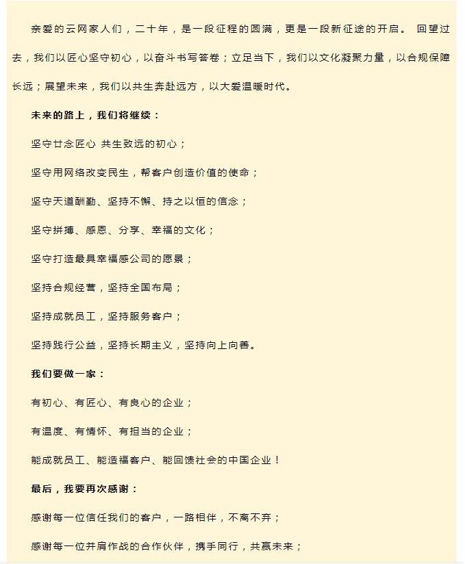 廿念匠心 共生致远——云网集团董事长20周年致辞